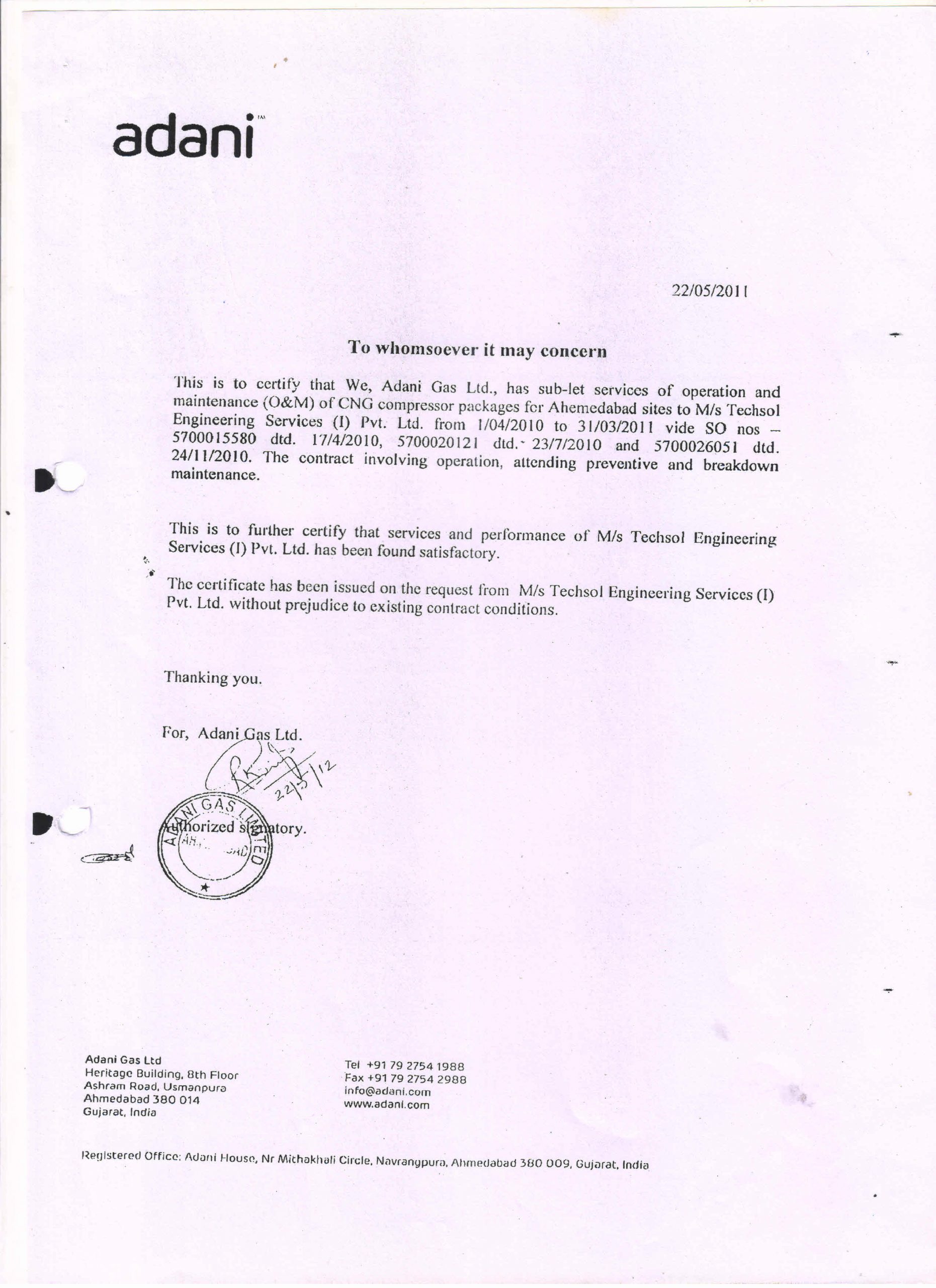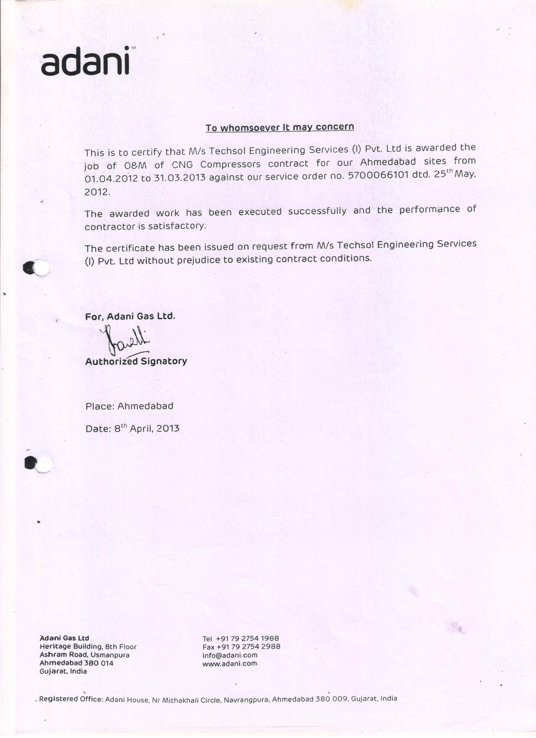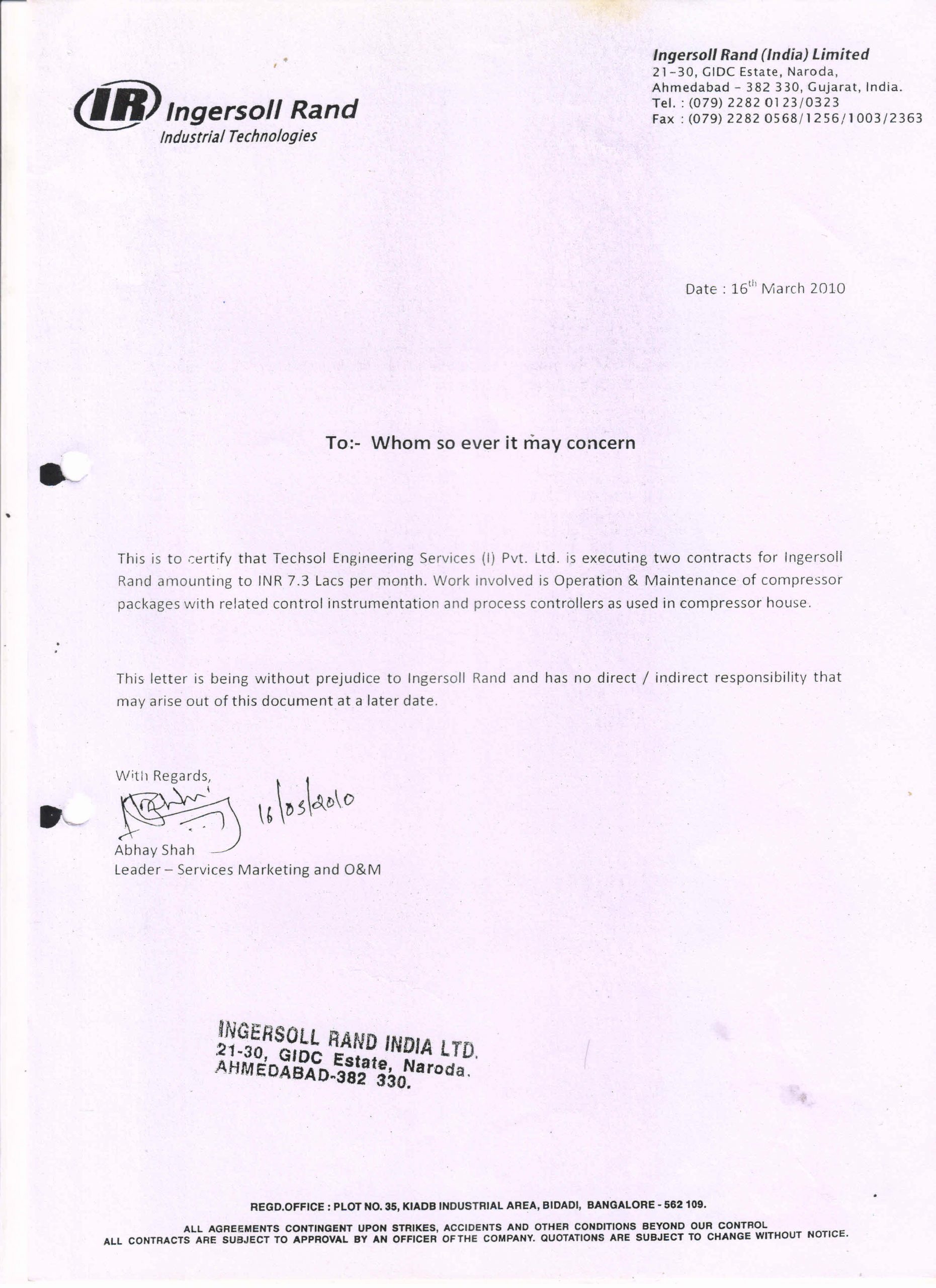 In addition to above Techsol also employs around Two Hundred operators ( ITI ) who operate and maintain Gas / Air Compressor packages at various locations in the country.